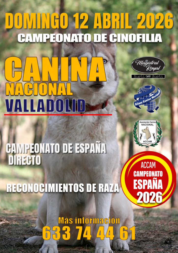 Exposición Canina Nacional, Campeonato de España directo, domingo día 12 de abril del 2026 en las instalaciones del Centro Integrado de Servicios para Mascotas (ubicación del evento) El Rincón de Marepopito en C/ Cromo 4, Valladolid. Con un recinto cubierto y fácil zona de aparcamiento.