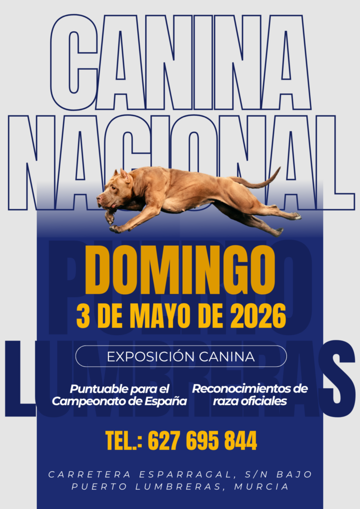 Exposición Canina Nacional, puntuable para el Campeonato de España, en el MERCADO DE GANADO EQUINO DE PUERTO LUMBRERAS, Carretera Esparragal, s/n bajo, Puerto Lumbreras, Murcia.
